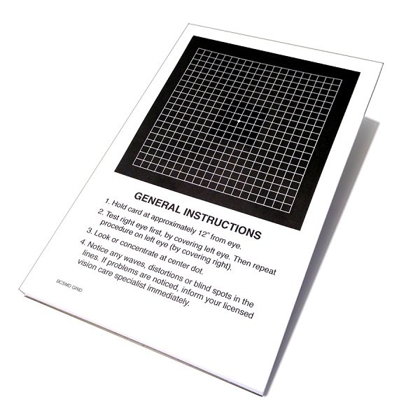 Amsler grid pad for testing and monitoring macular problems. Ideal for patients to take home.
