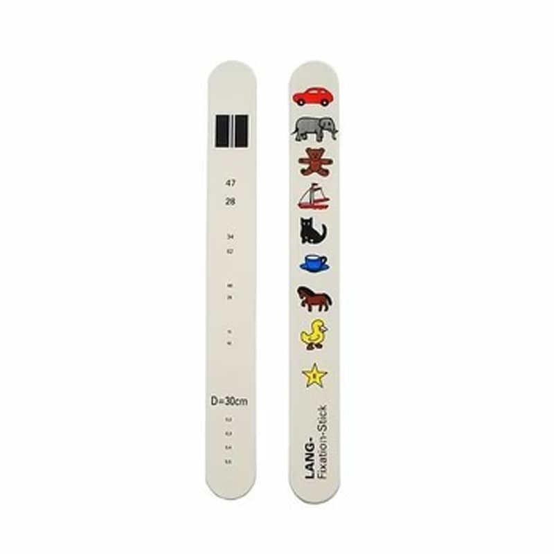 The Lang Fixation Stick has been designed by J. Lang for the assessment of eye fixation, motility, accommodation, convergence, for cover test, and to prepare the patient for testing with the Lang-Stereotest® or the Lang-Stereopad®.