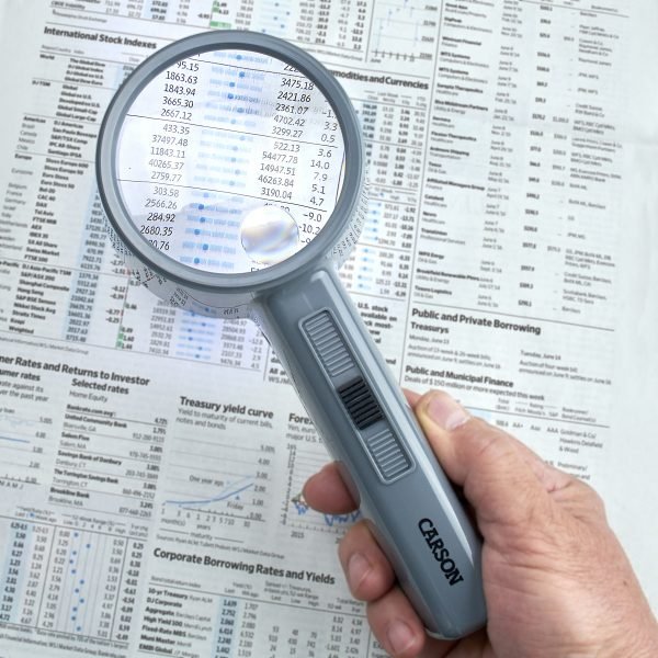 The PT-90 MagniTop™ from Carson Optical is an LED lighted, 2x power/4x power bi-focal spot lens compact table-top Magnifier. This magnifier is perfect for phone directories, newspapers, contracts or reading any fine print. The MagniTop™ Hands Free Magnifier is used around the world by airport security and at Customs checkpoints.