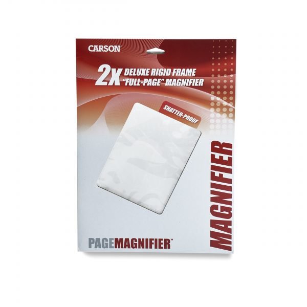 The DM-21 Page Magnifier from Carson Optical is a deluxe rigid frame full page magnifier. It’s 2x power acrylic fresnel lens is sturdy and shatterproof. The Page Magnifier is perfect for reading large areas of small print such as maps, newspapers, directories, recipes and more.