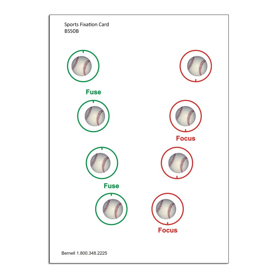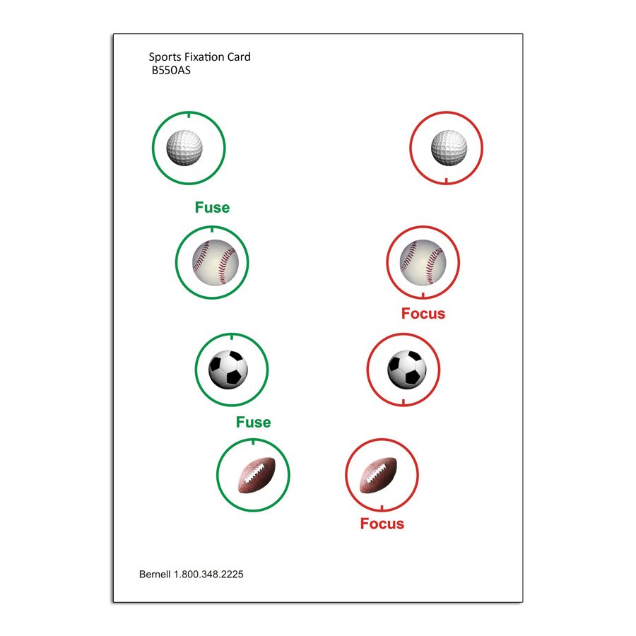 Make your patients aware that you do both Vision Therapy and Vision Training (Sports Vision!) with these new sports cards. Let them select their favorite sport: baseball, football, soccer or all sports. Cards come in transparent or opaque packs of 5 cards. Two balls are set opposite of the other two so that you can ask which balls come out/go in to the card to determine if the patient is really seeing as they should. Vertical lines on circles for suppression check. Red/green circles to encourage color rivalry.